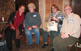 The challenge was not the knitting -- garter stitch rectangles are well within my ability -- but the colors. I tend strongly toward jewel tones and brights; these muted, tweedy, fall and winter landscape colors are unusual for me. I had them in my stash because I've sampled all of the Peace Fleece colors at one time or another.